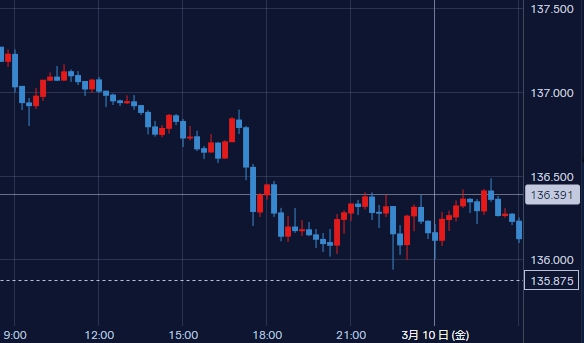 ドル円の夜間の動きは比較的横ばいでした。(136.0~136.5円程度の水準)