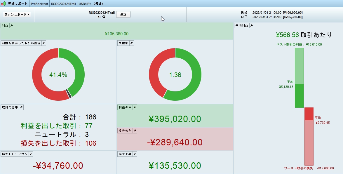 最大ドローダウン(一時的にどれだけ損失を出したか)も分かるので資金をどれだけ入れればよいのかもわかります。