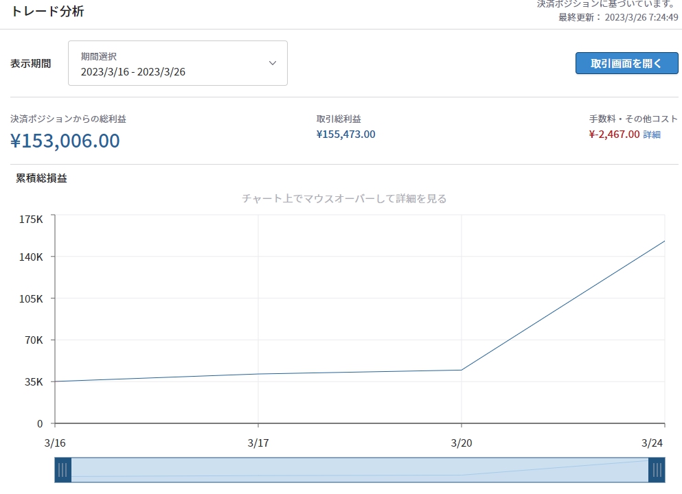 コロナショック(2020/3)のときは大きく下げたため利益が出ました。